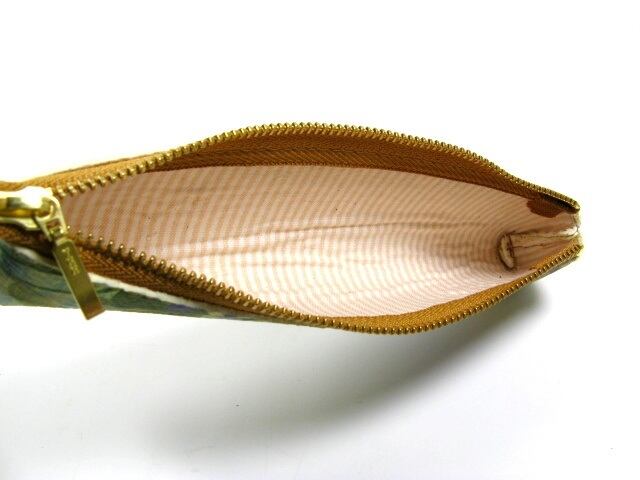 シンプルなペンケースです。睡蓮の模様とピッグスキンの手触りが豊かな